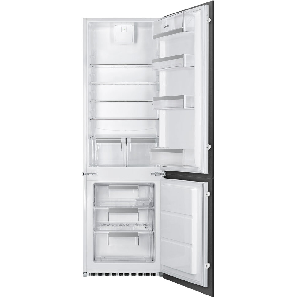 Встраиваемый холодильник SMEG C81721F предназначен для кратковременного хранения различных готовых блюд, охлаждённых продуктов и напитков, а также для заморозки и длительного хранения замороженных продуктов и полуфабрикатов. Полки на дверце пластиковые, с металлической окантовкой. Внутри холодильной камеры полки из закалённого стекла, благодаря чему выдерживают большую нагрузку. Данная модель идеально подходит для встраивания в объёмный гарнитур на просторной кухне.