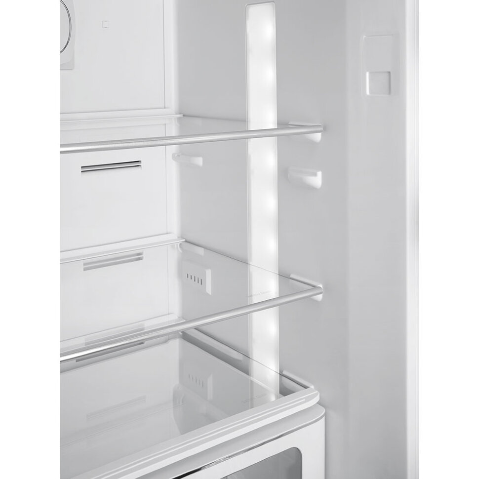 Холодильник SMEG FAB32RCR5 предназначен для кратковременного хранения различных готовых блюд, охлаждённых продуктов и напитков, а также для заморозки и длительного хранения замороженных продуктов и полуфабрикатов. Полки изготовлены из закалённого стекла, благодаря чему выдерживают большую нагрузку. Данная модель идеально подойдёт для авторских интерьеров в уникальном стиле или для кухонь в классическом исполнении.