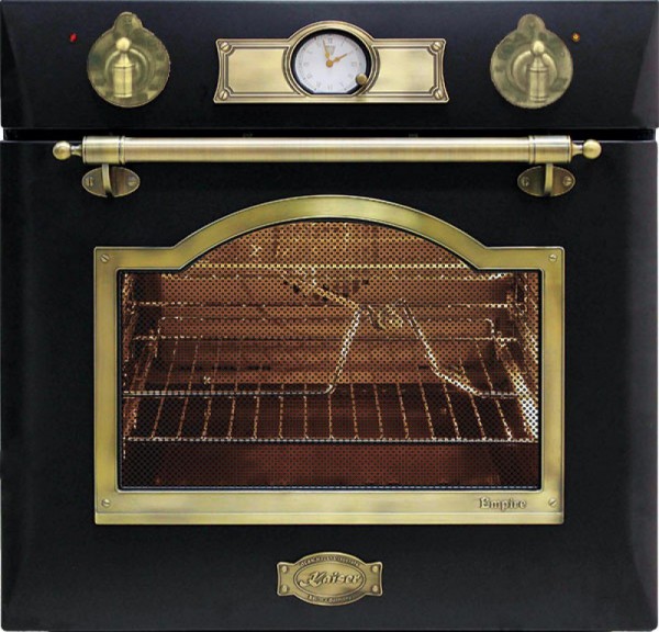 Черный духовой шкаф EG 6345 Em сочетает изысканный дизайн и современную функциональность. Фурнитура под бронзу подчеркивает внешний вид духового шкафа и нагревается при работе духовки. Таймер стилизован под старину. Вертел и гриль расширяют возможности приготовления. Благодаря тройному стеклу дверца остается холодной во время работы духовки. Съемная дверца и каталитическая эмаль на внутренних стенках облегчают очистку духового шкафа.